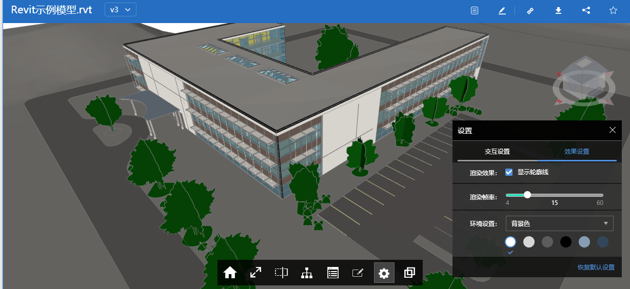 2)效果设置方面:新增模型效果设置中轮廓线显示控制开关,可以根据需要显示构件的轮廓边线;