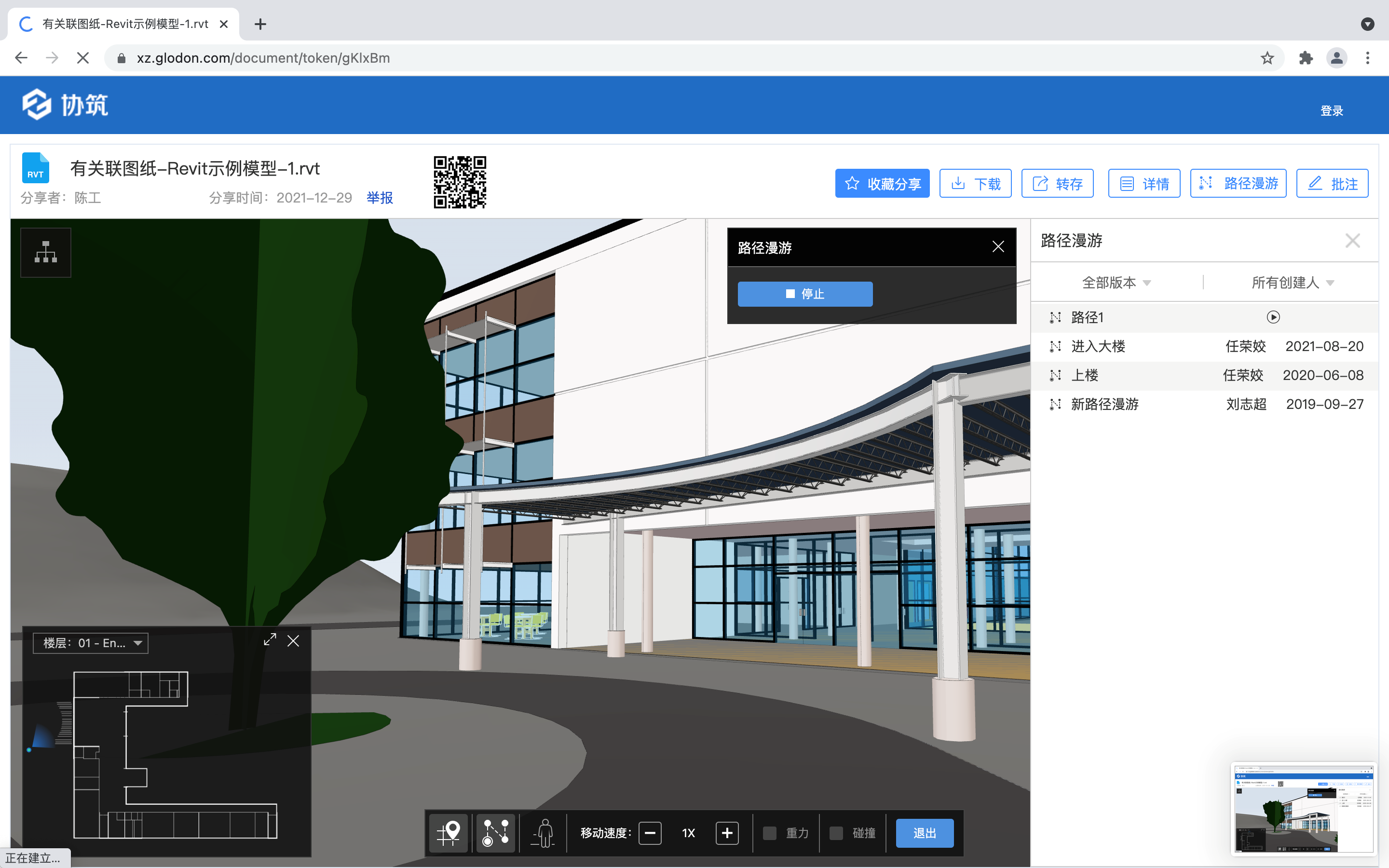 12月14日,协筑网页端,支持在模型分享页面查看漫游路径。