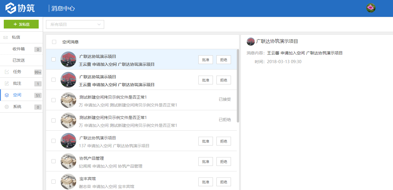 - 全新的Web端消息中心模块,按照私信、任务、批注、空间、系统对消息进行归类,支持直接跳转查看文档、任务、批注等消息附属对象。